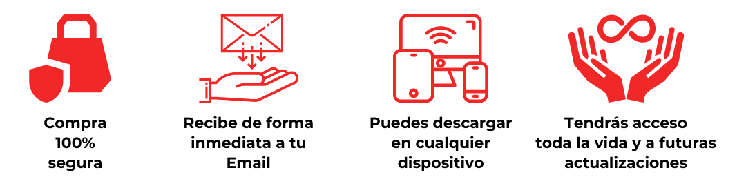 - Acceso a futuras actualizaciones del contenido de por vida y sin pagar un centavo extra.